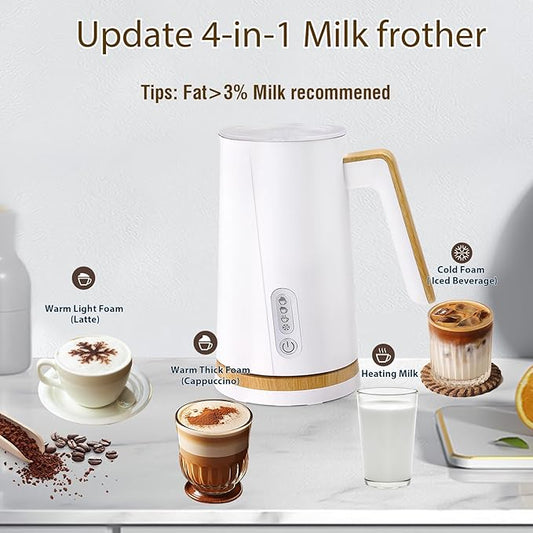 Milk Frother, 4-in-1 Milk Steamer and Frother, Hot & Cold Foam Milk Warmer with Temperature Control, Auto Shut-Off Frothers for Coffee, Latte, Cappuccino, Macchiato