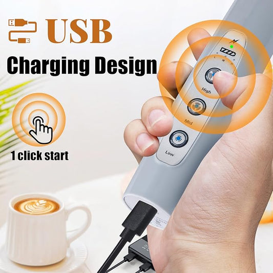 YARRAMATE Rechargeable Milk Frother Wand Handheld, 3 Speed Adjustable Electric Drink Mixer with 2 Whisks, Stainless Steel Stirrer for Coffee, Lattes, Protein Shakes, Matcha, Egg
