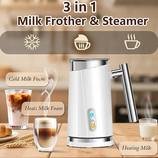 Milk Frother and Steamer, Non-Slip Stylish Design, Hot & Cold Milk Steamer with Temperature Control, Auto Shut-Off Frother for Coffee, Latte, Cappuccino, Macchiato (white)