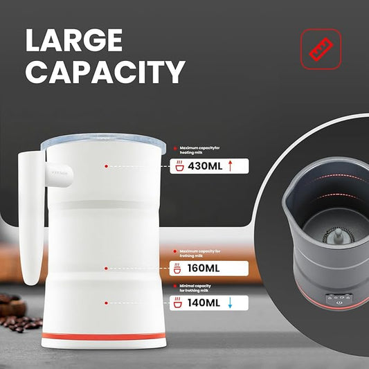 4 in 1 Electric Milk Frother, Steamer with Warming function, Automatic Hot and Cold Milk Frother, Coffee Frother, Latte, Hot Chocolate, Macchiato, Cappuccino (White)