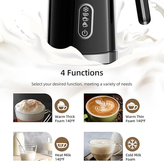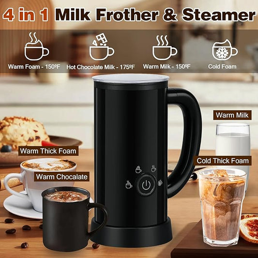 Milk Frother, 4-in-1 Milk Frother and Steamer with Temperature Control & Auto Shut-Off, 11.8oz/350ml Milk Warmer, Hot and Cold Foam Maker for Coffee, Latte, Cappuccinos, Macchiato, Black