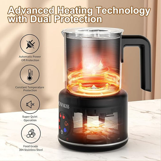 Milk Frother, 4-in-1 Electric Foam Maker with Touchscreen & Temp Display, Hot & Cold Milk Steamer with Non-Stick Coating, Silent Operation for Coffee, Latte, Cappuccino, Matcha, Hot Chocolate