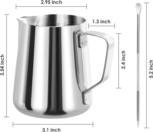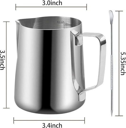Milk Frothing Pitcher, Espresso Steaming Pitcher 12oz,Espresso Machine Accessories,Stainless Steel Milk Coffee Cappuccino Barista Steam Pitchers Milk Jug Cup with Decorating Pen Latte Art
