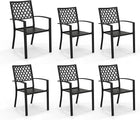 PHI VILLA Wrought Iron Patio Dining Chairs, Stackable Black Outdoor Patio Chairs Set of 6, Metal Patio Chairs, Support 300 LBS, Black