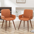 Load image into Gallery viewer, LUNLING Mid Century Modern Dining Room Chairs Set of 2 Accent Faux Leather Kitchen Chair Bentwood Frame with Armrest,Upholstered Seat,Metal Legs Chairs,Adjustable Foot for Kitchen Dining Desk(Orange)