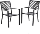 PHI VILLA Outdoor Dining Chairs Set of 2, Stackable Black Metal Wrought Iron Chairs, All Weather Dining Furniture for Patio, Deck, Proch, Backyard