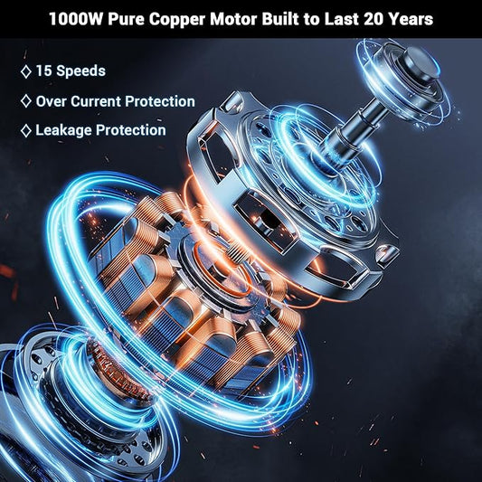 Immersion Blender Handheld 1000W 5 in 1 Corded Stick Hand Blender Kitchen with 12 Speed, BPA-Free, Mixing Beaker, Chopper, Whisk, Milk Frother, Perfect Emulsifier for Soup, Baby Food, Sauce, Puree