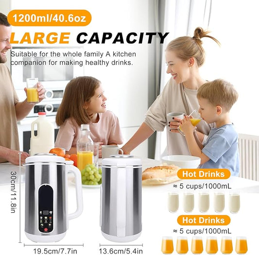 8 in 1 Nut Milk Maker, 40.6oz Stainless Steel Almond Milk Maker, Homemade Almond, Oat, Coconut, Plant Based Milks and Non Dairy Beverages
