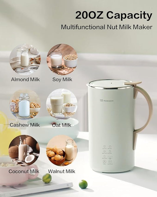 MOKKOM Automatic Nut Milk Maker, 20 oz Soy Milk Maker, Homemade Almond, Oat, Coconut, Soy, Plant-Based Milk and Dairy Free Beverages, Almond Milk Maker with Delay Start/Boild Water/Self Clean - Green