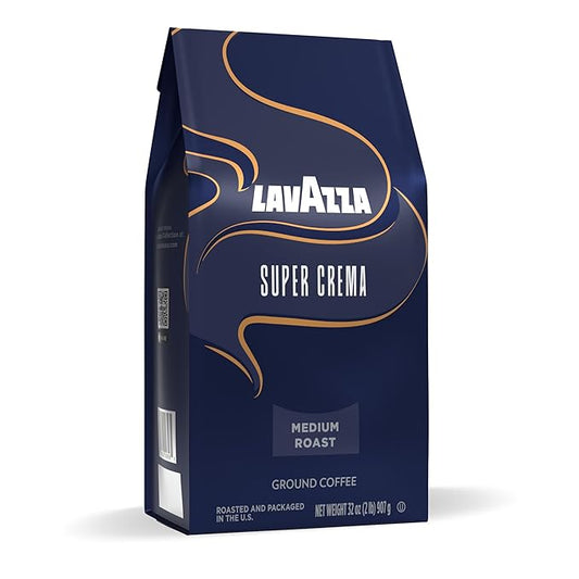Lavazza Super Crema Ground Coffee, Medium Roast, Arabica and Robusta Blend, 32 oz Bag (Pack of 6)