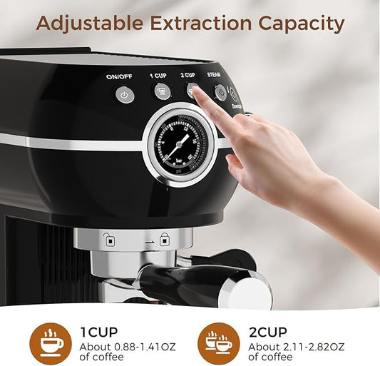 Espresso Machine with Milk Frother, 20 Bar Espresso Maker for Latte and Cappuccino, Expressions Coffee Machine with Removable Water Tank (Black)