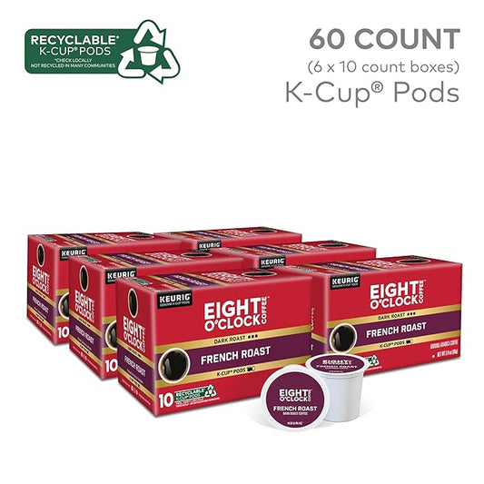 Eight O'Clock Coffee French Roast, Single-Serve Coffee K-Cup Pods, Dark Roast, 60 Count (6 packs of 10)