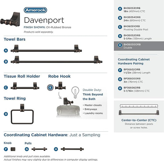 Amerock | Oil Rubbed Bronze | Davenport |Towel Bar | 18 inch (457 mm) | 3 Piece | Bathroom Accessories Set