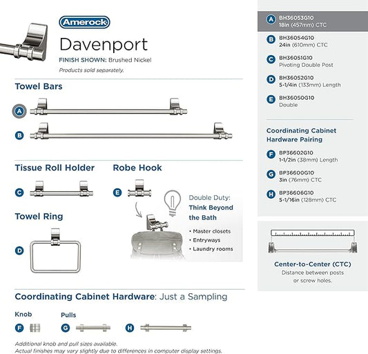 Amerock | Brushed Nickel | Davenport |Towel Bar | 18 inch (457 mm) | 3 Piece | Bathroom Accessories Set