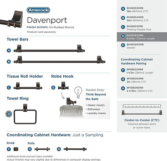Amerock | Oil Rubbed Bronze | Davenport |Towel Bar | 18 inch (457 mm) | 4 Piece | Bathroom Accessories Set