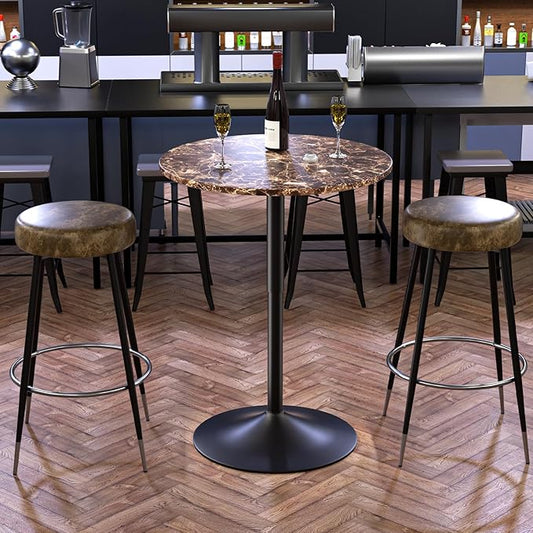 Shahoo Round Bar Table, Cocktail Tables with Metal Base & MDF Top, for Bistro Pub, Cafe, Black