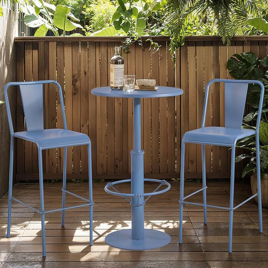 Magshion 31" Round Bar Table Height Adjustable 26"-35" Pub Table with Enlarged Base for Living Room Patio Bistro Café, White