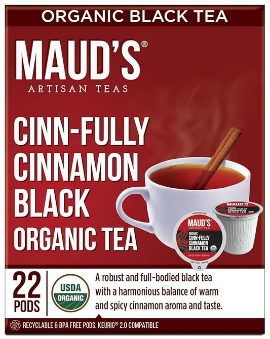Maud's Organic Cinnamon Black Tea Pods, 22 ct, Recyclable Single Serve Tea Pods – 100% Gourmet Blended Tea Leaves, Compatible with Keurig K Cups Maker