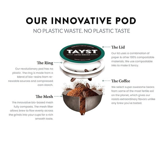 Tayst Coffee Pods, Bold & Brilliant Dark Roast, K Cups Compatible with Keurig Coffee Maker, Sustainable Single Serve, Pack of 100