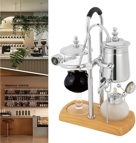 Family Balance Siphon Syphon Coffee Maker Siphon Brewer, Elegant Retro-Style Design Sliver (Sliver 1)