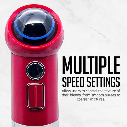 OVENTE Cordless Immersion Hand Blender, Rechargeable Handheld Portable Stick Mixer with 8 Mixing Speed Option, One-Touch Control and Stainless Steel Blades for Smoothies, Shakes or Soups, Red HR781R