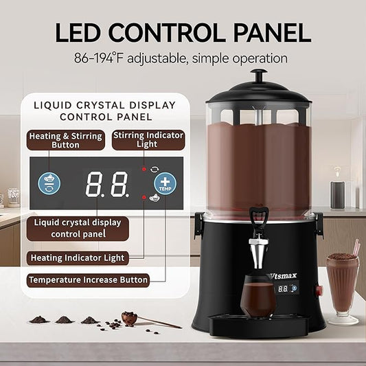 10L/2.6Gal Commercial Hot Chocolate Machine 86-194℉ Intelligent Temperature Control, Hot Beverage Dispenser Maker for Chocolate Drink, Cocoa, Milk, Coffee, Juice