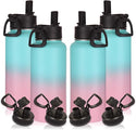 Volhoply 32 oz Insulated Water Bottles Bulk 4 Pack with Straw Lid & Spout Lid,Stainless Steel Sports Water Bottle,Double Wall Vacuum Cups,Leakproof Wide Mouth Metal Flask for Travel(Green Pink,4)