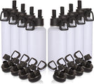 Volhoply 32oz Insulated Water Bottles Bulk 8 Pack with Straw Lid & Spout Lid,Not Suitable for Sublimation,Stainless Steel Sports Water Bottle,Double Wall Vacuum Cups,Metal Flask for Hiking(White,8)