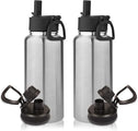 Volhoply 32 oz Water Bottles Bulk 2 Pack with Straw Lid & Spout Lid,Insulated Sports Water Bottle,Double Wall Vacuum Stainless Steel Cups,Leakproof Wide Mouth Metal Flask for Travel(Silver,2)