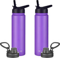 - 4 LEAK-PROOF LIDS: Two different and leak-proof lids of the water bottle with straw are made of food grade plastic, 100% BPA-free and can be switched at any time to meet your every demand. Chug lid with screw cap allows for fast water flow when you're feeling the burn. Straw lid allows you to enjoy spill-proof sipping without efforts. Both lids of the insulated water bottles allow easy one-handed or hands-free sipping. Perfect for any indoor and outdoor activities.