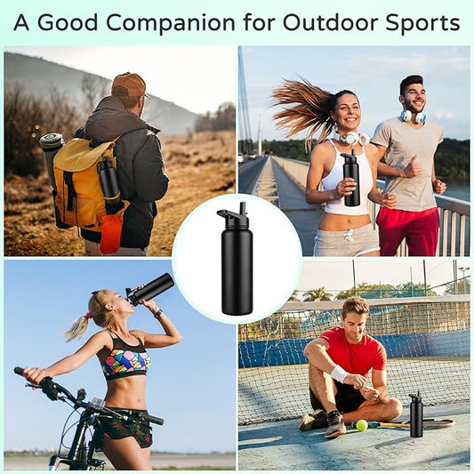 Volhoply 32 oz Water Bottles Bulk 4 Pack with Straw Lid & Spout Lid,Insulated Sports Water Bottle,Double Wall Vacuum Stainless Steel Cups,Leakproof Wide Mouth Metal Flask for Travel(Silver,4)
