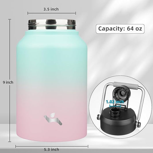 Half Gallon Water Bottle Insulated(Cold for 48 Hrs),BPA Free&Leak Proof,64oz Stainless Steel Water Jug/Flask,Big thermo,Large Water Bottle with Handle for Gym,Hiking,Camping,Gradient Blue