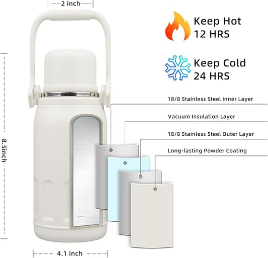 BJPKPK Insulated 50oz Thermal Dishwasher Safe Water Bottle with Lid and Carry Handle Stainless Steel Water Bottles for Outdoor Sports,Beige