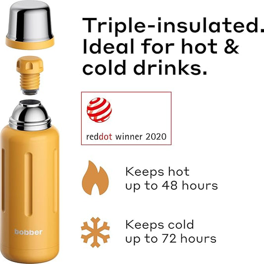 Bobber - 34 oz Vacuum Insulated Stainless Steel Water Bottle with Cup Lid - Dishwasher Safe - Keeps Drinks Hot for 48 Hours and Cold for 72 Hours - Triple Walled Thermo Flask (Ginger Tonic)