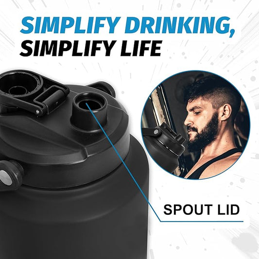NATURE PIONEOR One Gallon Water Bottle Insulated - Large Double Vacuum Stainless Steel 84 oz Water Bottle with Holder/Carrier, 84oz Water Jug,Wide Mouth