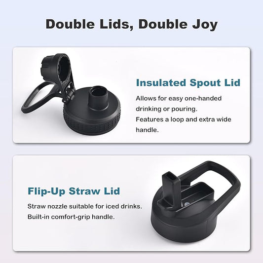 mininoo Insulated Stainless Steel Water Bottle with Straw and Lid for Sports, 24 oz, Black