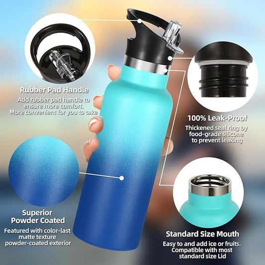 DOMICARE 32 oz Insulated Water Bottle, Vacuum Insulated Stainless Steel Sports Water Bottle with Straw Lid & Spout Lid, Leakproof, Reusable - Travel, Camping, Bike, Green Gradient
