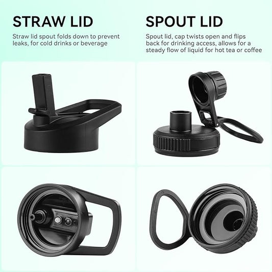 DOMICARE 16 oz Water Bottle Stainless Steel Double Wall Vacuum Insulated Water Bottle with Straw lids & Spout Lid, Leakproof