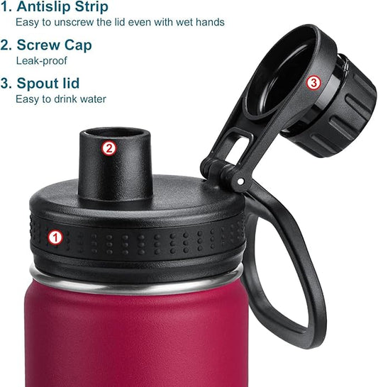 Koodee Insulated Water Bottle, 18 oz Stainless Steel Double Wall Vacuum Wide Mouth Sport Bottle with Leakproof Spout Lid (Purple)