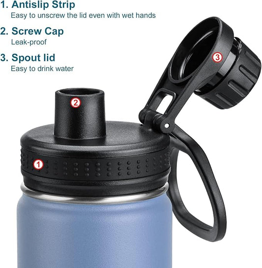 koodee Insulated Water Bottle, 18 oz Stainless Steel Double Wall Vacuum Wide Mouth Sport Bottle with Leakproof Spout Lid (Bby Blue)