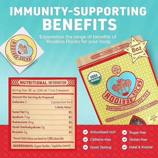 Naturally Sweet Organic Rooibos Tea - 8 oz Premium Loose Leaf Rooibos Tea – Caffeine-Free and Sugar Free Red Rooibos Tea Organic – Low-Tannin and Antioxidant-Rich Rooibos Tea Loose Leaf