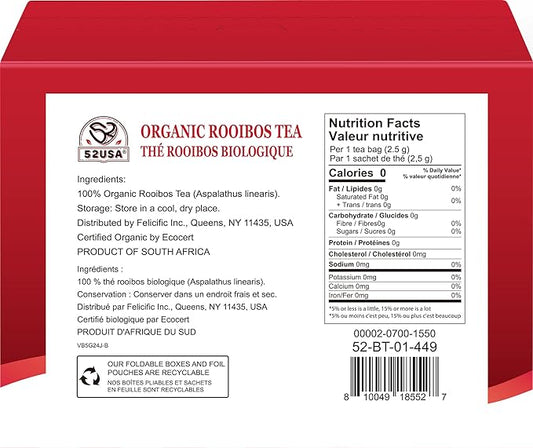 52USA Rooibos Tea Organic, 100 Teabags, Naturally Sweet Herbal Tea, Caffeine Free Rooibos Tea, Farmed in South Africa, 9oz (250g) (Pack of 2)