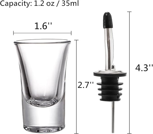 Tebery 30 Pack Shot Glass Bulk Heavy Base, 1.2 Oz Tequila Glass Set with 2 Bottle Pourer, Clear Small Whiskey Shot Glass Cups for Vodka, Liquors, Cocktail, Espressos, Bar