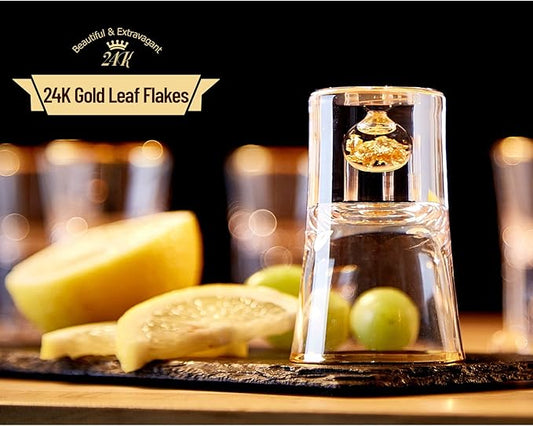 DUJUST Shot Glasses (1.5oz), Crystal Shot Glass Set Decorated with 24K Gold Leaf Flakes, Cool & Cute Shot Cups, BPA-Free & Lead-Free, Perfect for Décor & Collection, Gift Choices - 2 pcs