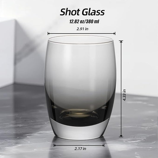 KAMMAK Smoky Gray Whiskey Glasses Set, 12.82 oz (380 ml) Old Fashioned Tumbler with Delicate Rim, Thick Heavy Bottom Glass & Seamless Design for Scotch, Bourbon, Cocktails