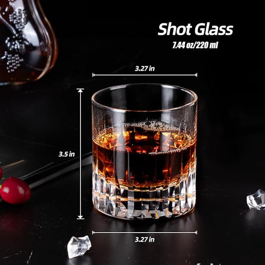 KAMMAK Whiskey Glass 7.75oz Set of 2, Old Fashioned Glass for Scotch, Cocktails, Rum, Shot Glasses Vodka in Bar And Party Gifts for Men, Whisky Lovers, Wedding, Anniversary, Birthday