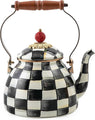 - ELEGANT CHECKED TEA KETTLE: The classic Courtly Check stove kettle features black-and-white colour-dragged checks from base to spout for a hint of simple elegance. Itโs topped with a wood handle and a faux-cinnabar knob.