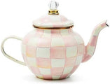 - ELEGANT TEA-SET ESSENTIAL: The Rosy Check 4-cup enamel teapot is the jewel of any tea serving set. Hand painted with pretty pink-and-white checks on enameled steel with a glass topper, itโs the right size for a tea party for two or plenty for just you.