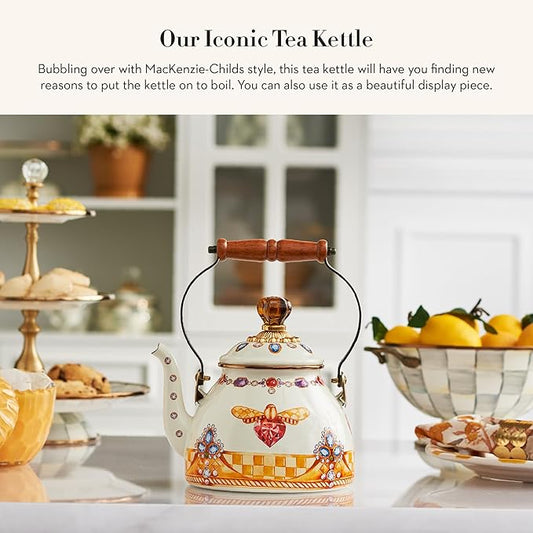 MACKENZIE-CHILDS 2-Quart Enamel Tea Kettle, Cute Tea Kettle for Stovetop, Queen Bee