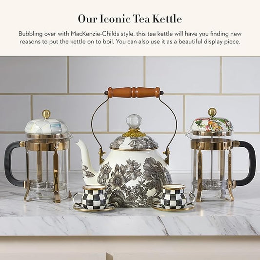 MACKENZIE-CHILDS 2-Quart Enamel Tea Kettle, Cute Tea Kettle for Stovetop, Sterling English Garden